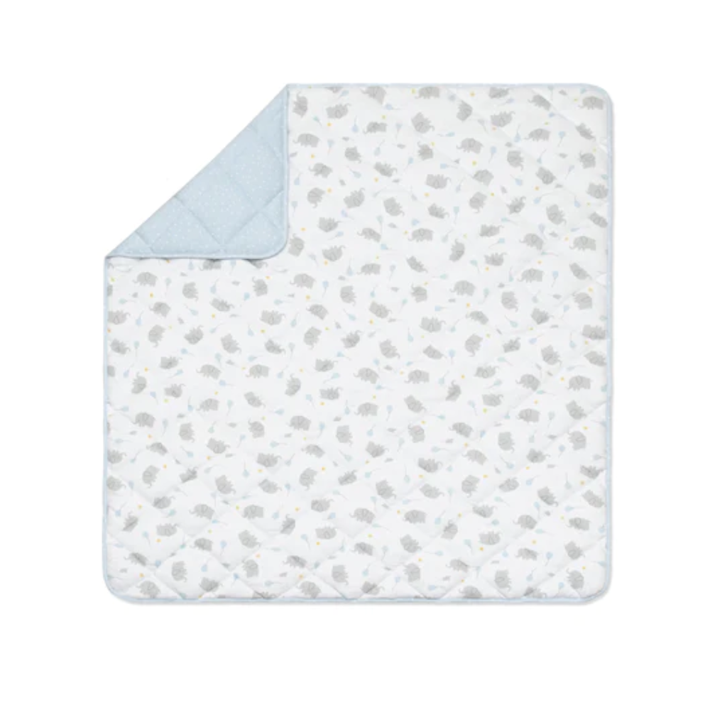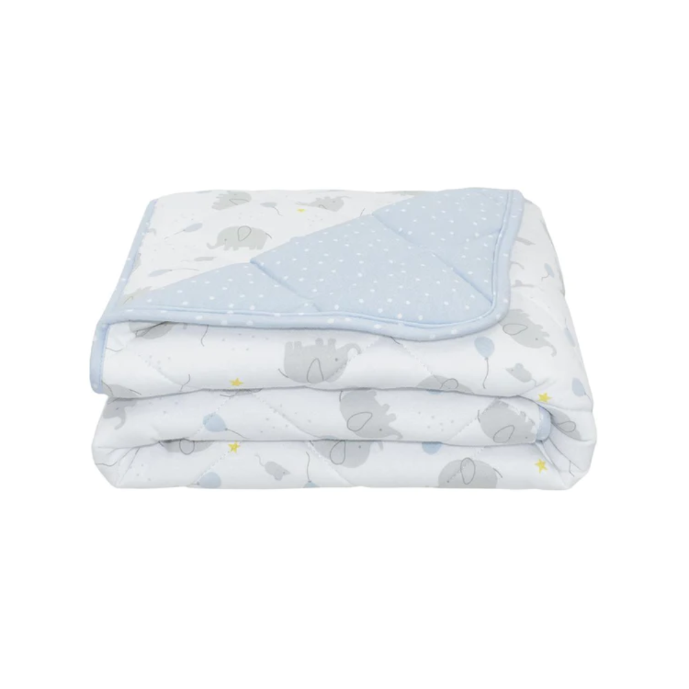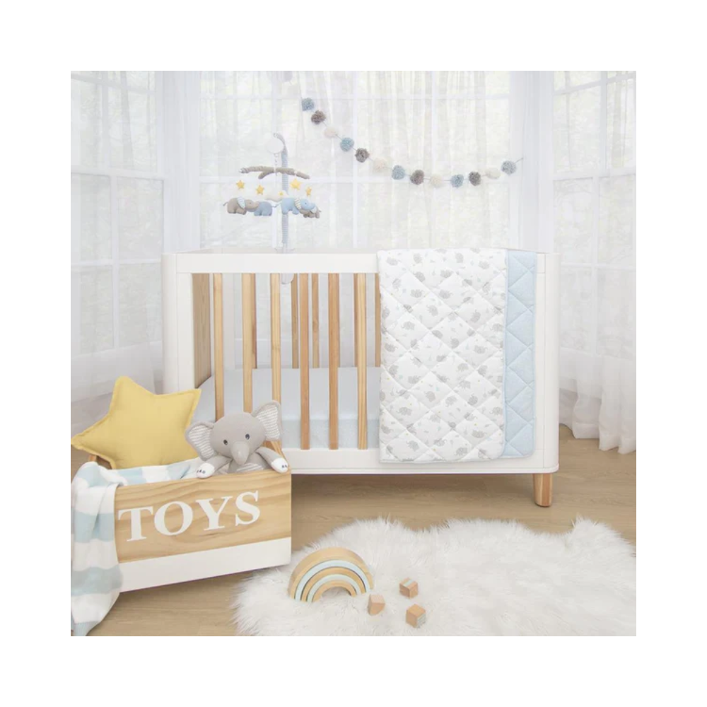 - Con frescos tonos grises y azules, el edredón Mason es parte de la nueva línea Whimsical de elementos esenciales para bebés, que está inspirada en ilustraciones infantiles.