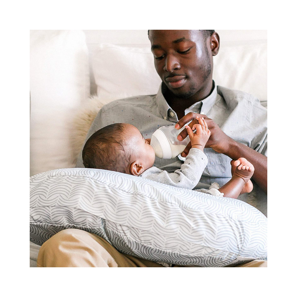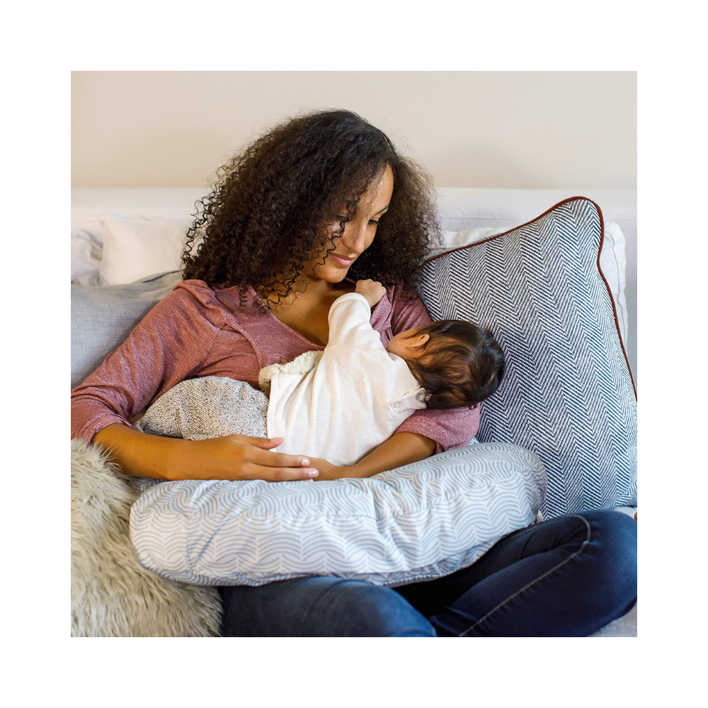 - Elaborada con la ayuda de una consultora de lactancia certificada, esta almohada se creó para que la lactancia y la alimentación con tetero sean más cómodas.
