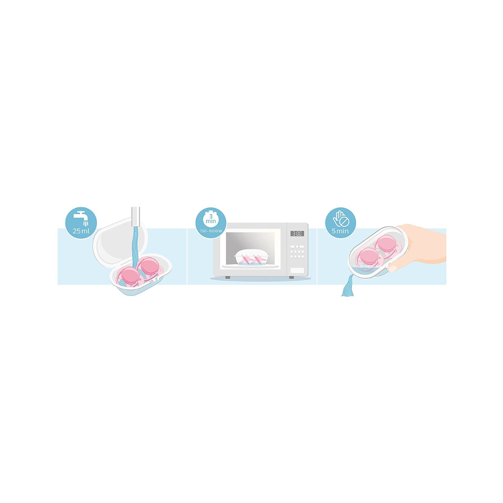 - La caja de esterilización y transporte proporciona aún más higiene y facilita el proceso de esterilización en el microondas.