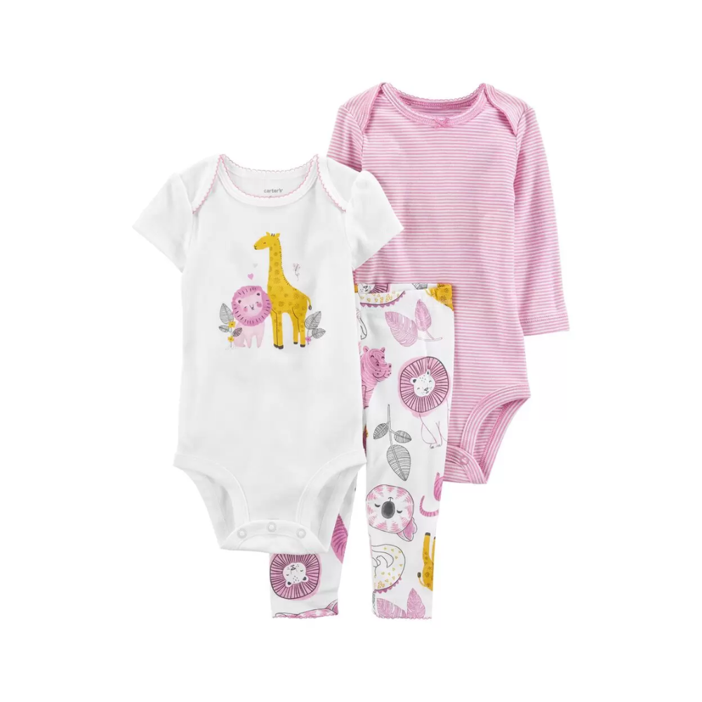- Confeccionado en suave algodón con tres dulces piezas en una, este conjunto es perfecto para llenar el pequeño armario del bebé.
