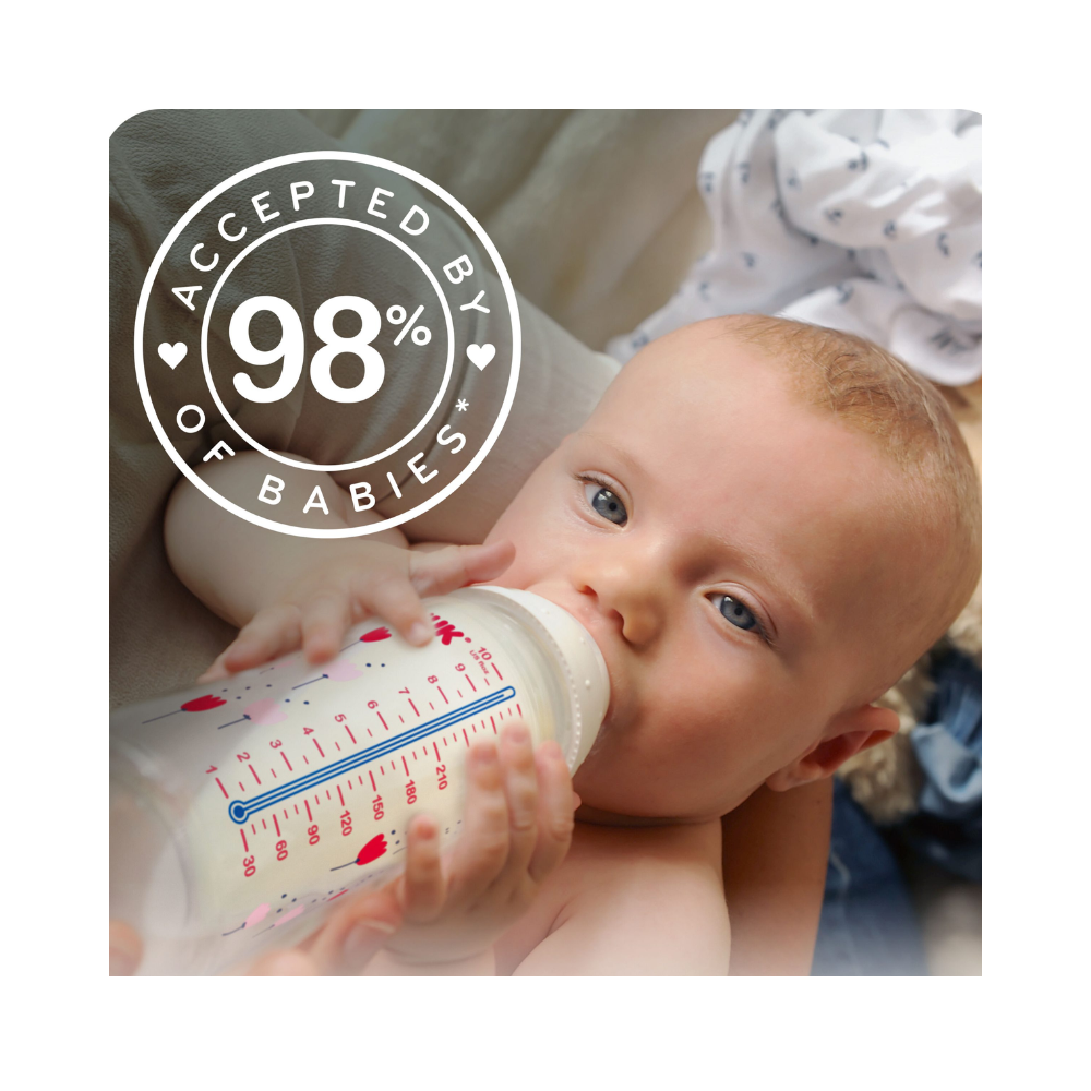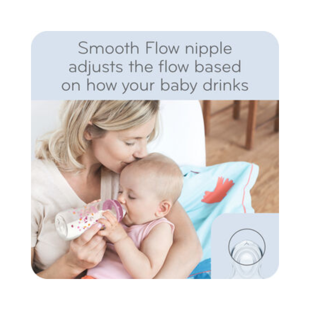 - La tetina NUK® Flujo Suave permite al bebé controlar el flujo.