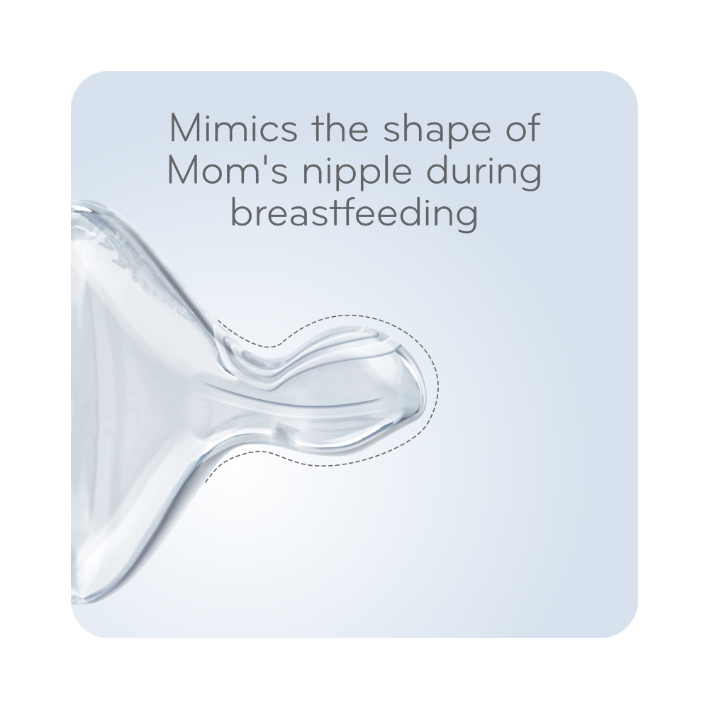 - La tetina imita la forma del pezón de la madre durante la lactancia.