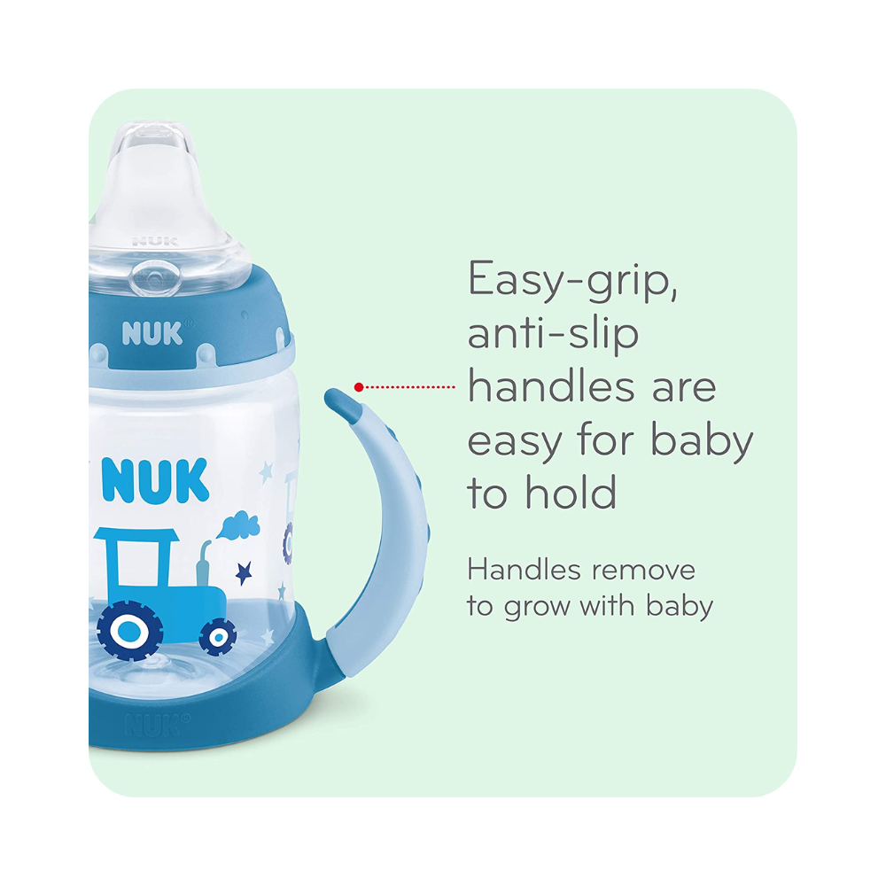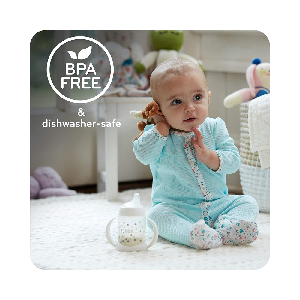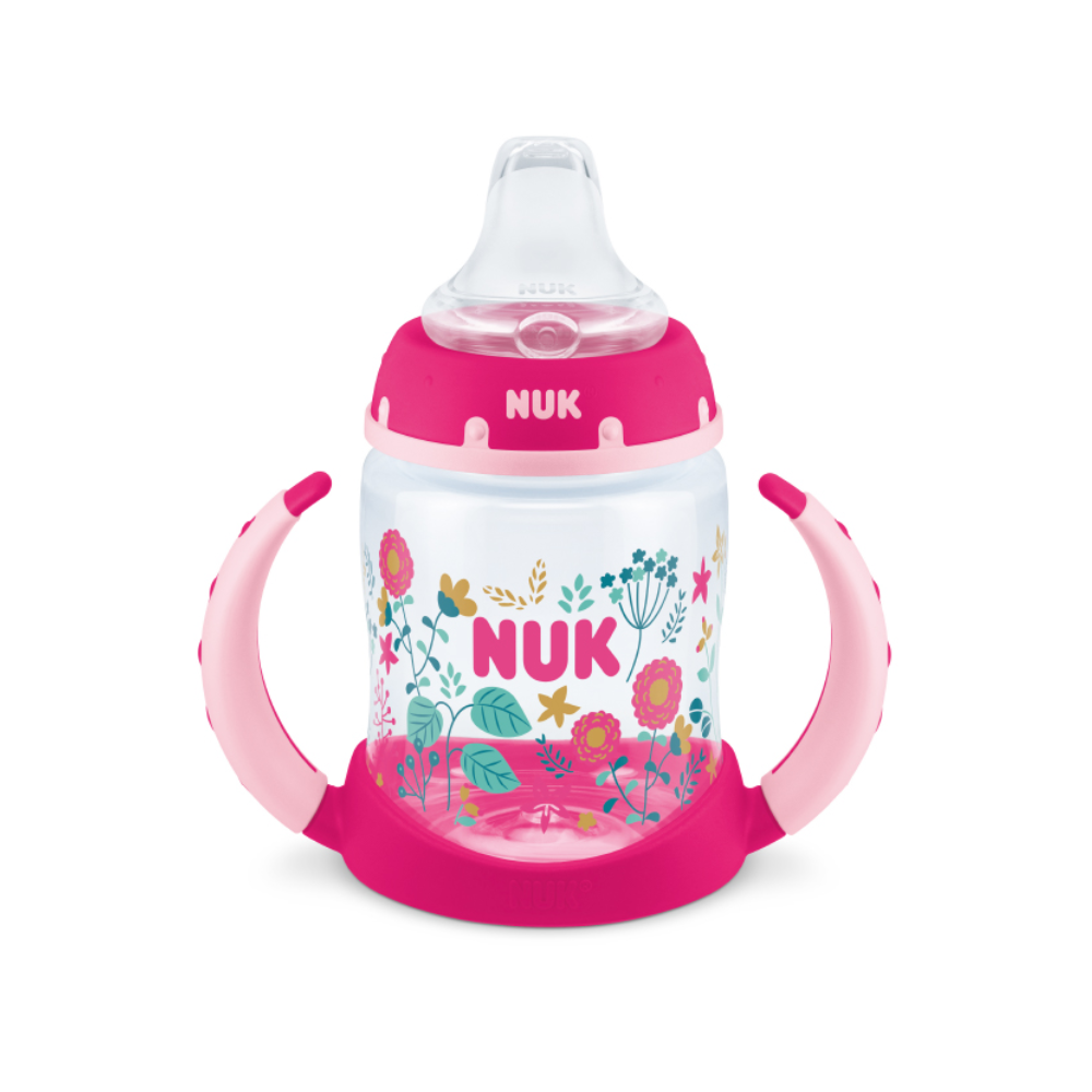 - El vaso de entrenamiento NUK promueve fácilmente la transición del bebé del pecho o el tetero al vaso con boquilla.